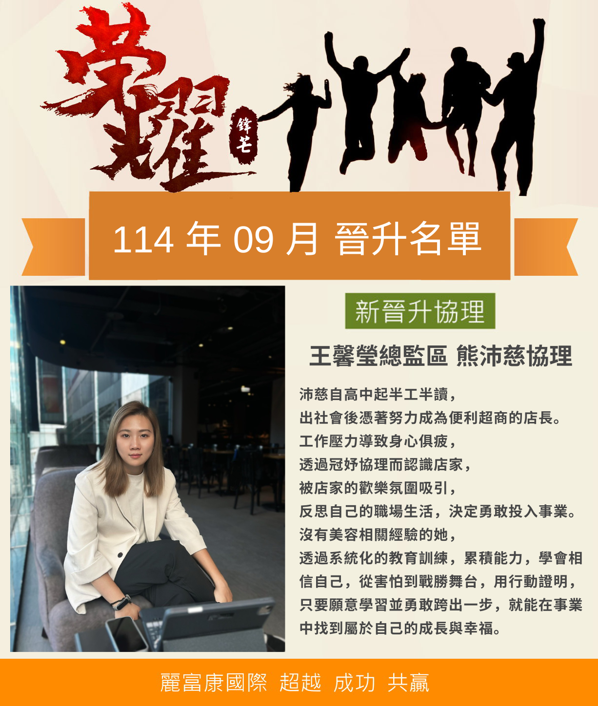 最新消息 榮耀榜 公告 防疫資訊 美容保養分享 活動速遞 宣導海報 新聞紀錄 最新消息 榮耀榜 公告 防疫資訊 美容保養分享 活動速遞 宣導海報 新聞紀錄 榮耀榜 .首頁 > 最新消息 > 榮耀榜 [公告] 114年09月新晉升高階名單 發佈日期:2025-09-15 回上一頁