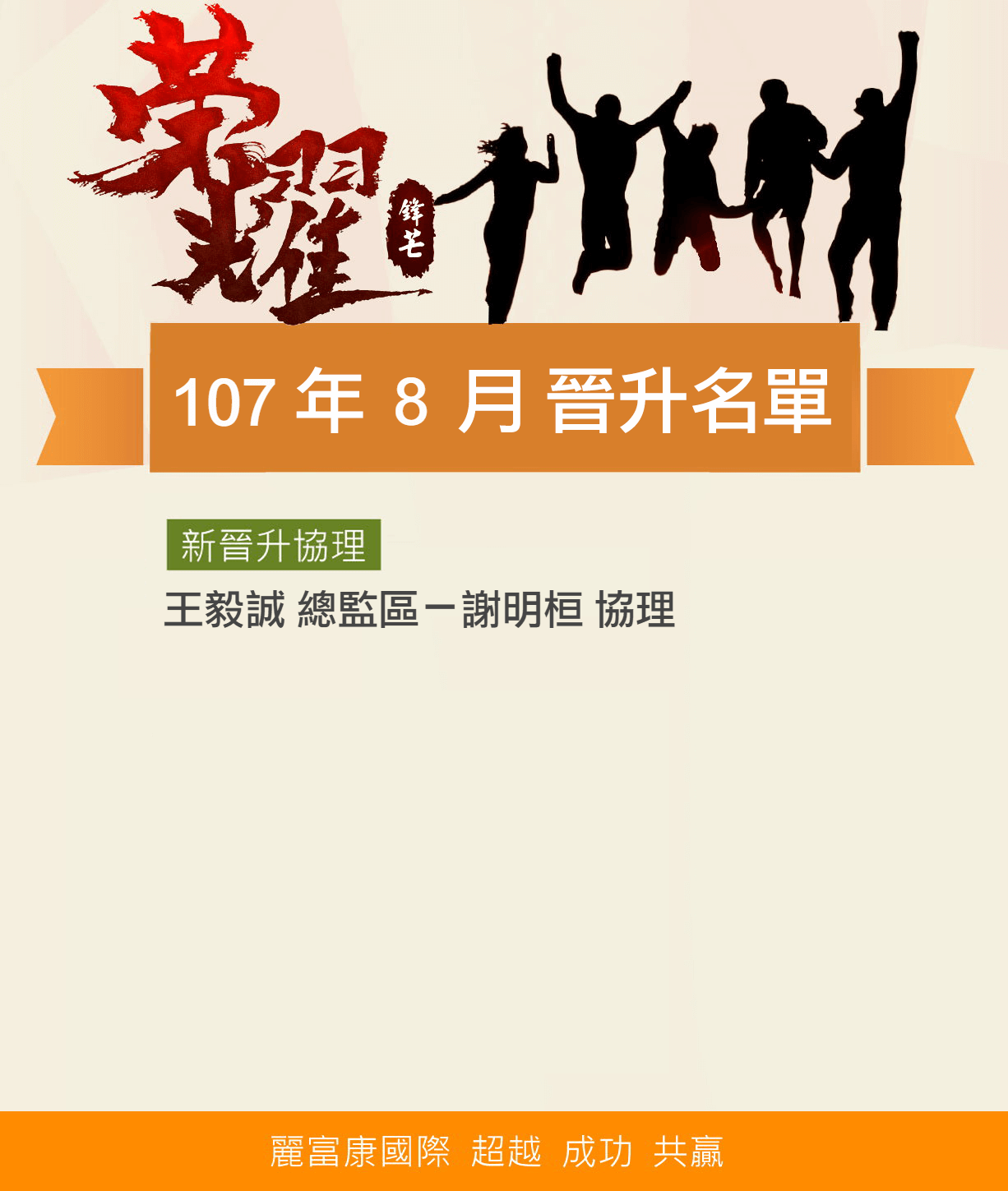 最新消息 榮耀榜 公告 防疫資訊 美容保養分享 活動速遞 宣導海報 新聞紀錄 最新消息 榮耀榜 公告 防疫資訊 美容保養分享 活動速遞 宣導海報 新聞紀錄 榮耀榜 .首頁 > 最新消息 > 榮耀榜 [公告] 107年08月新晉升高階名單 發佈日期:2018-08-01 回上一頁
