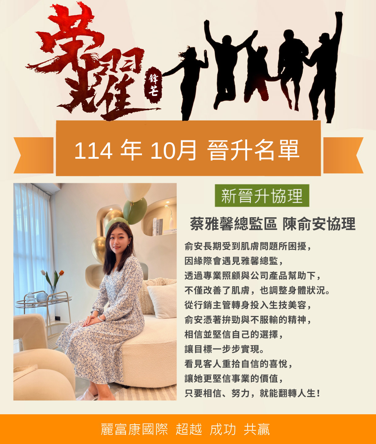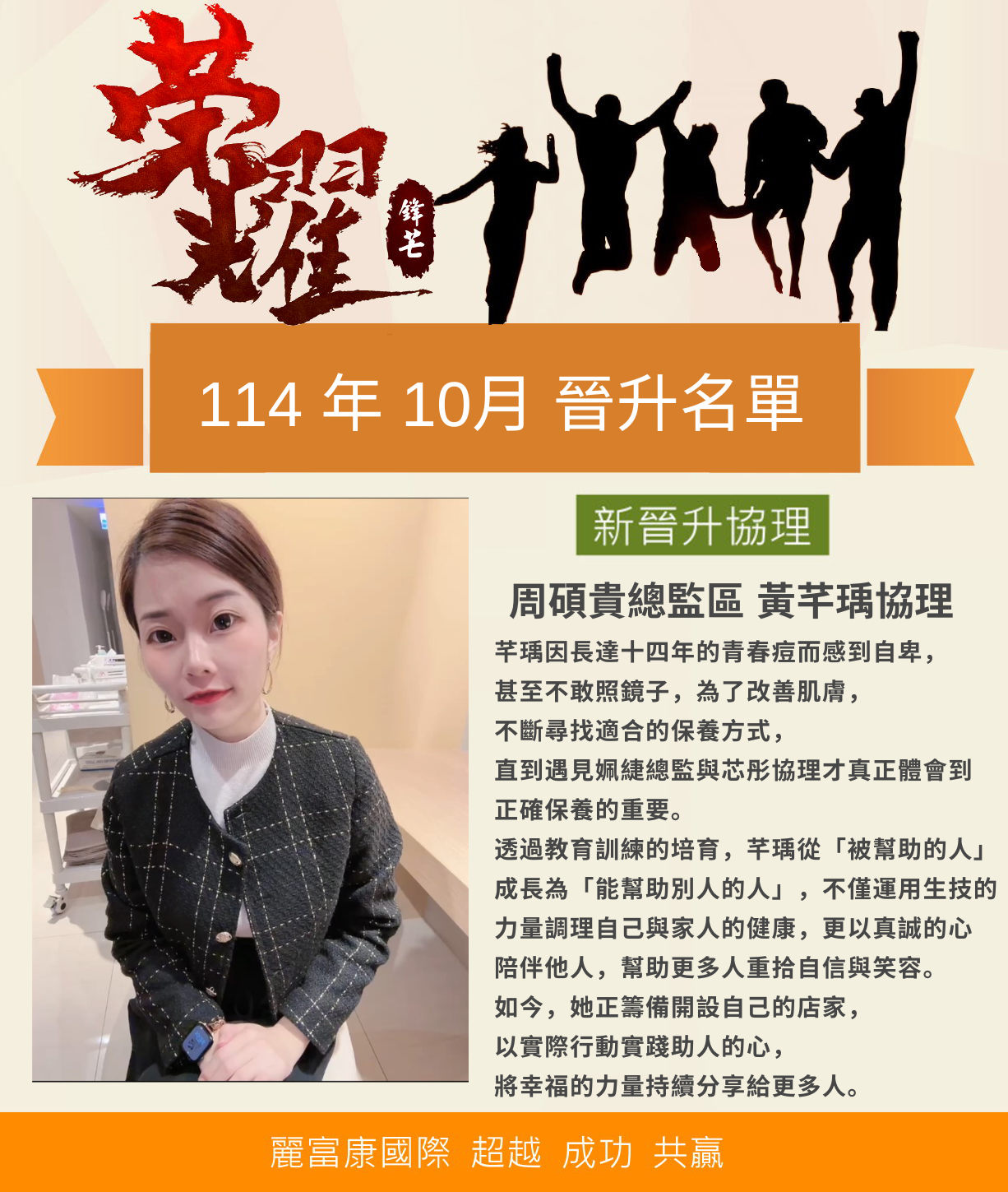 最新消息 榮耀榜 公告 防疫資訊 美容保養分享 活動速遞 宣導海報 新聞紀錄 最新消息 榮耀榜 公告 防疫資訊 美容保養分享 活動速遞 宣導海報 新聞紀錄 榮耀榜 .首頁 > 最新消息 > 榮耀榜 [公告] 114年10月新晉升高階名單 發佈日期:2025-10-01 回上一頁