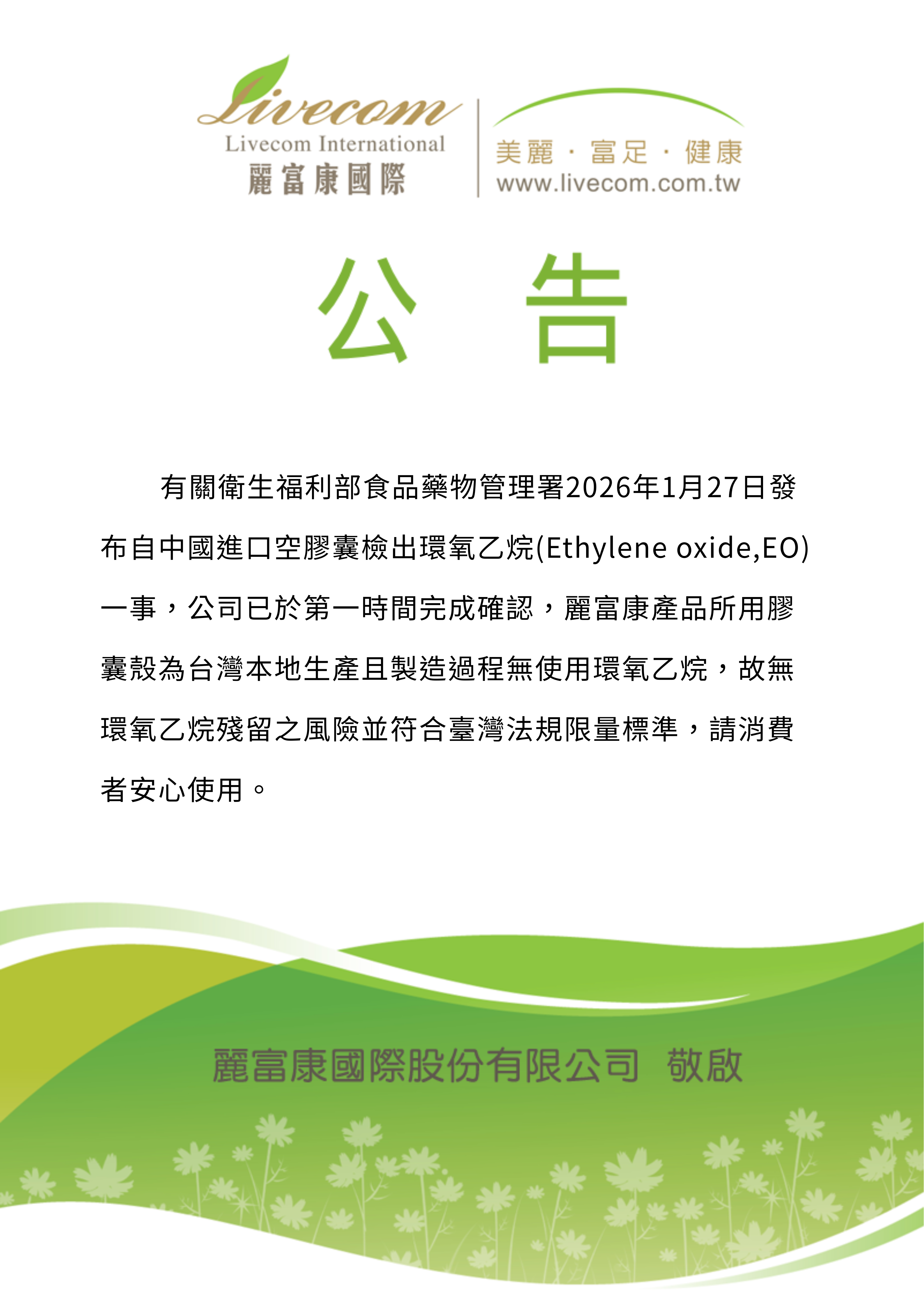 最新消息 榮耀榜 公告 防疫資訊 美容保養分享 活動速遞 宣導海報 新聞紀錄 最新消息 榮耀榜 公告 防疫資訊 美容保養分享 活動速遞 宣導海報 新聞紀錄 公告 .首頁 > 最新消息 > 公告 【公告】產品安全聲明 發佈日期:2026-02-09 回上一頁